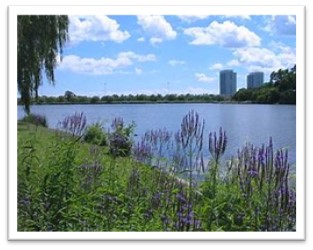 Grenadier Pond, looking south, Lake Ontario lurks beyond.
