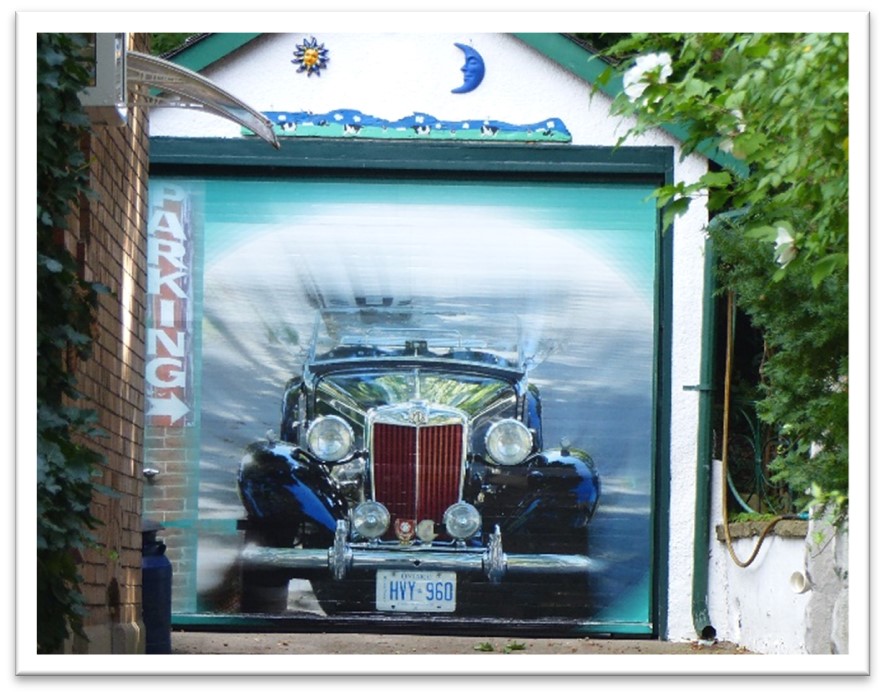 Towards the end of the walk, Sheila announces, “This is great, but,” checking details that escaped Gord’s and my eyes like the car painted on the garage door, “I’ve been here before.”